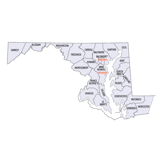 Amazon Com Maryland County Map 36 W X 21 5 H Paper Office Products
